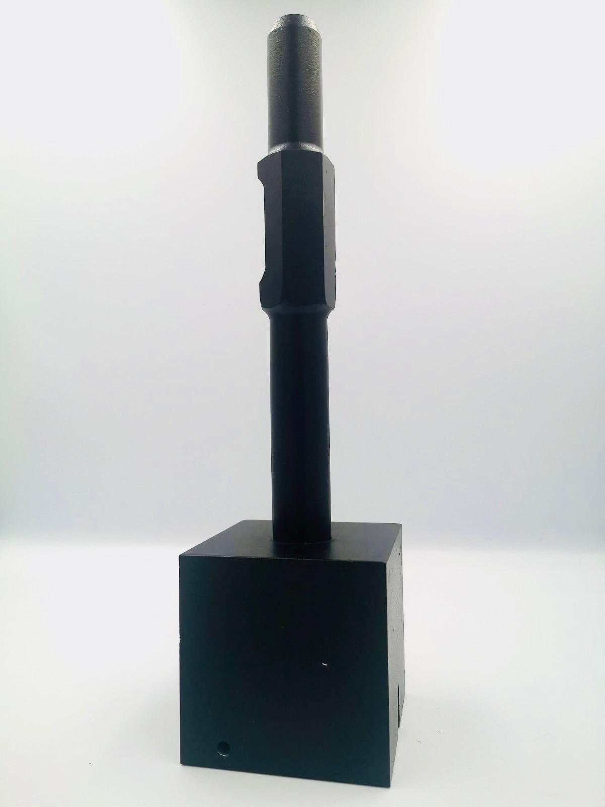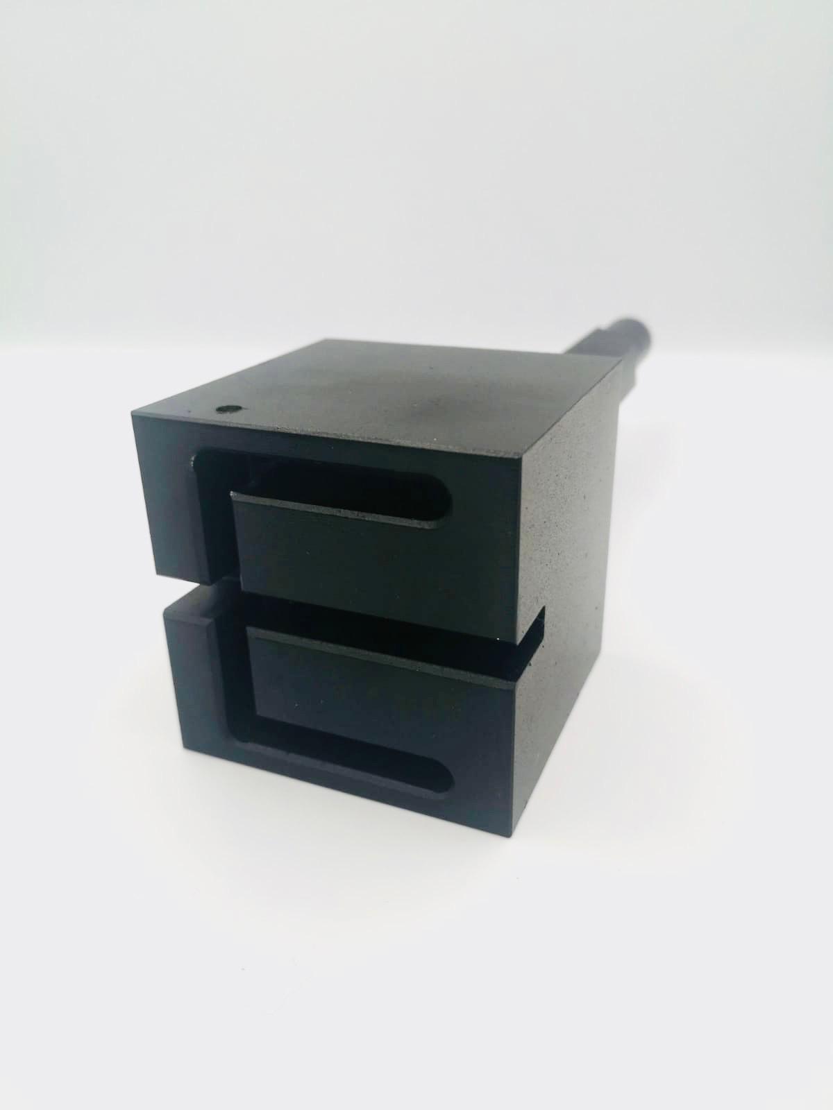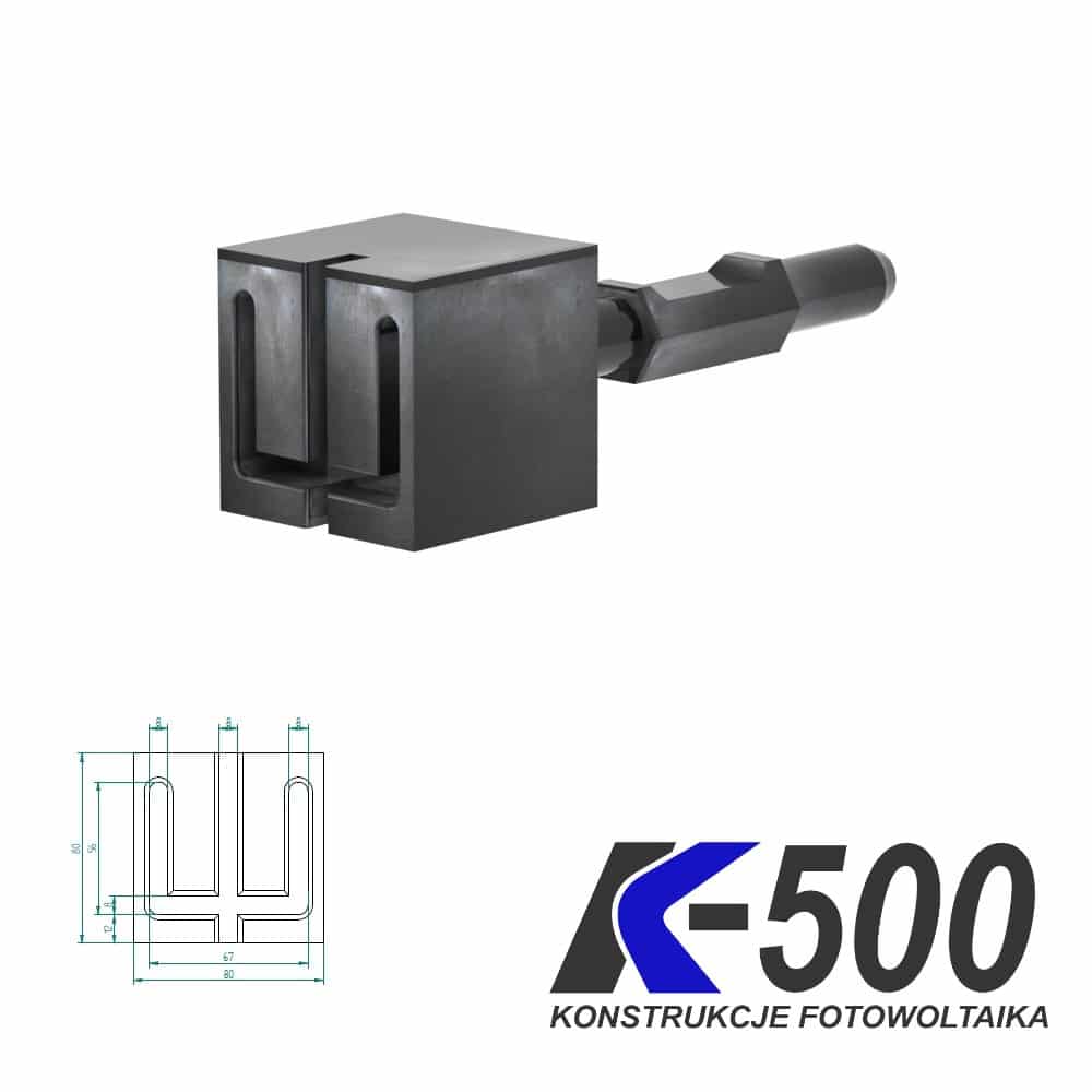 Wyżłobienie w matrycy umożliwia skuteczne wbicie wszystkich naszych typów konstrukcji niezależnie od przekroju słupa wbijanego ponieważ dodatkowo wykonaliśmy nacięcie przez całą szerokość elementu które pozwala na wbicie słupów o większych przekrojach np. do konstrukcji typu Carport.